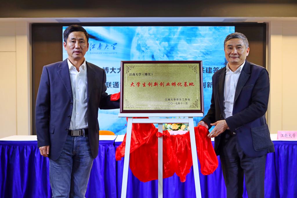 戴月波首先畅谈了他对大学创业教育的理解,创业教育核心不是手把手教学生怎么去开公司、做老板,关键在于培养学生的创新创业的意识、精神和能力。学生创新创业离不开社会各界的关心和支持,需要校企协同、多方联动。他指出,wwwbet365官方?博大大学生创新创业孵化基地的建立具有非常重要的意义,有利于完善构建学校“一体两翼,南北贯通”的创业教育体系,必将能够辐射和带动更多的师生创新创业。戴月波还引用习近平总书记讲话“青年兴则国家兴,青年强则国家强”,勉励广大师生闯出新路、创造新业,共享人生。联通无锡滨湖分公司总经理王志华、无锡博大置业有限公司总经理岳阳分别致辞。随后,无锡博大置业有限公司总经理岳阳与学工处处长张菁燕签署共建wwwbet365官方博大大学生创新创业孵化基地合作协议。无锡博大众创空间有限公司副总经理吴翠与我校首批入住项目团队负责人签订意向协议。校党委副书记戴月波和江苏皓锦投资管理有限公司董事长吴锦平共同为wwwbet365官方博大大学生创新创业孵化基地揭牌。戴月波还为吴锦平董事长颁发了wwwbet365官方大学生创业导师聘书。