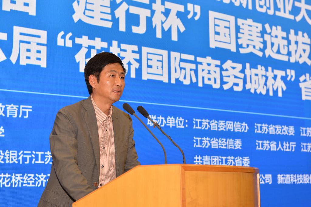 5月9日,“建行杯”第三届中国“互联网+”大学生创新创业大赛江苏赛区暨第六届“花桥国际商务城杯”江苏省省赛动员会在东南大学举行。全省141所高校分管校长和教务、学生等部门负责人以及中国高校创新创业投资服务联盟等相关投资企业代表,光明校园传媒等媒体代表近400人参加了动员会。江苏省教育厅副厅长王成斌、东南大学校长张广军院士、中国建设银行江苏省分行行长张毅出席会议,会议由江苏省教育厅高教处处长袁靖宇主持。校党委副书记戴月波代表学校在会上作大赛优秀组织代表发言。我校学生工作处、教务处等相关负责人和老师与会。