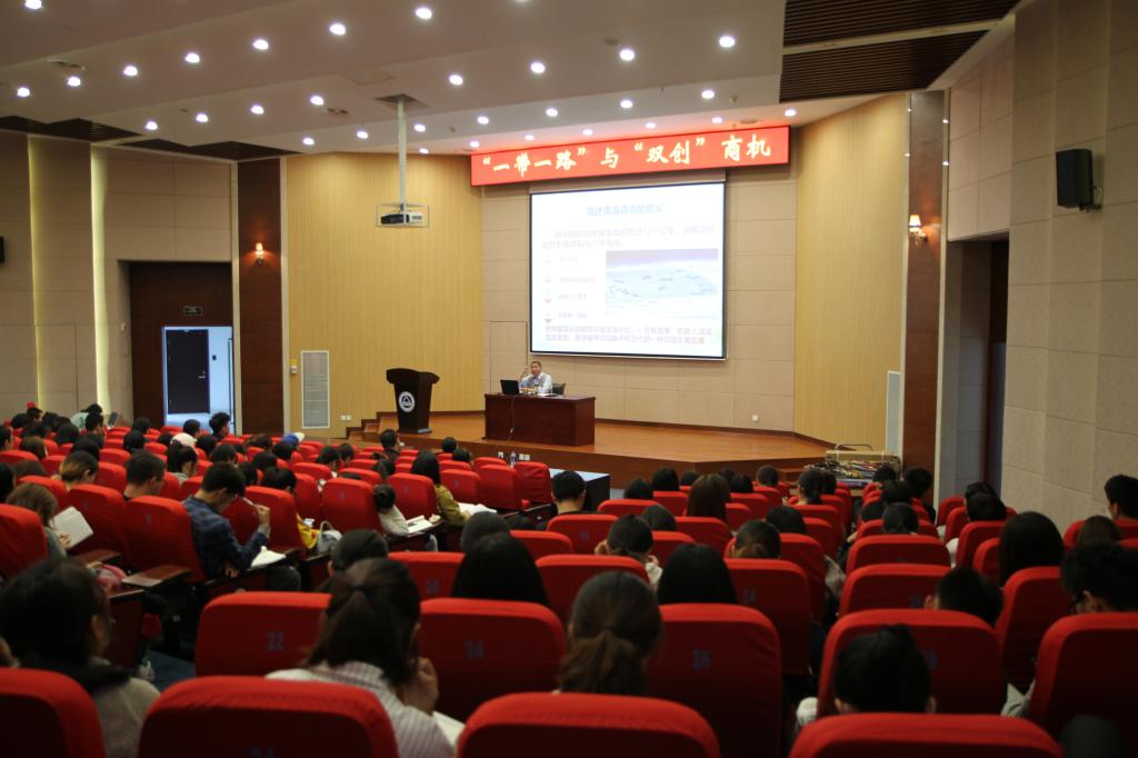 讲座开始,顾教授强调了大学生要五眼生辉认知国家重大谋划,提高行为生产率,认识国家大战略。之后具体介绍了“一带一路”将有利于搞好产能转移、资金外溢、先进技术外输的需要;有利于开辟两洋通道、带动邻国致富、再创丝路辉煌、激活中囯企业、获得外部资源、均衡基础设施、致力搞好五通、重建国际秩序、欧亚一体发展。最后顾教授就“一带一路”结合大学生创新创业提出思考建议:要放大思维格局、要善抓”双创”商机、找准一带一路双创方向。顾教授高屋建瓴,强调了“一带一路”战略对中国经济,甚至世界经济的重要性,给大学生指出了抓住时机进行创业的具体方向和建议。
