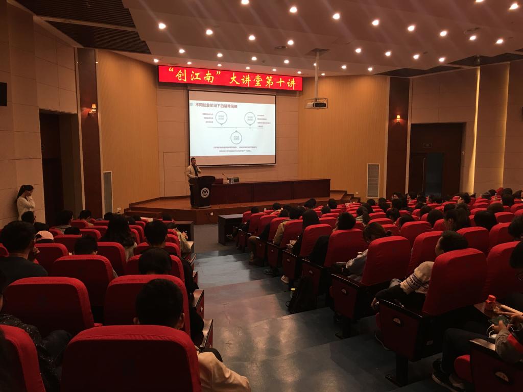 2017年11月3日下午,“创江南”大讲堂第十讲在远东报告厅顺利举办。wwwbet365官方创业导师、学生工作处相关领导、创业工作辅导员,以及各学院300余名参与“互联网+”大学生创新创业大赛和对创业感兴趣的同学参加了本次活动。